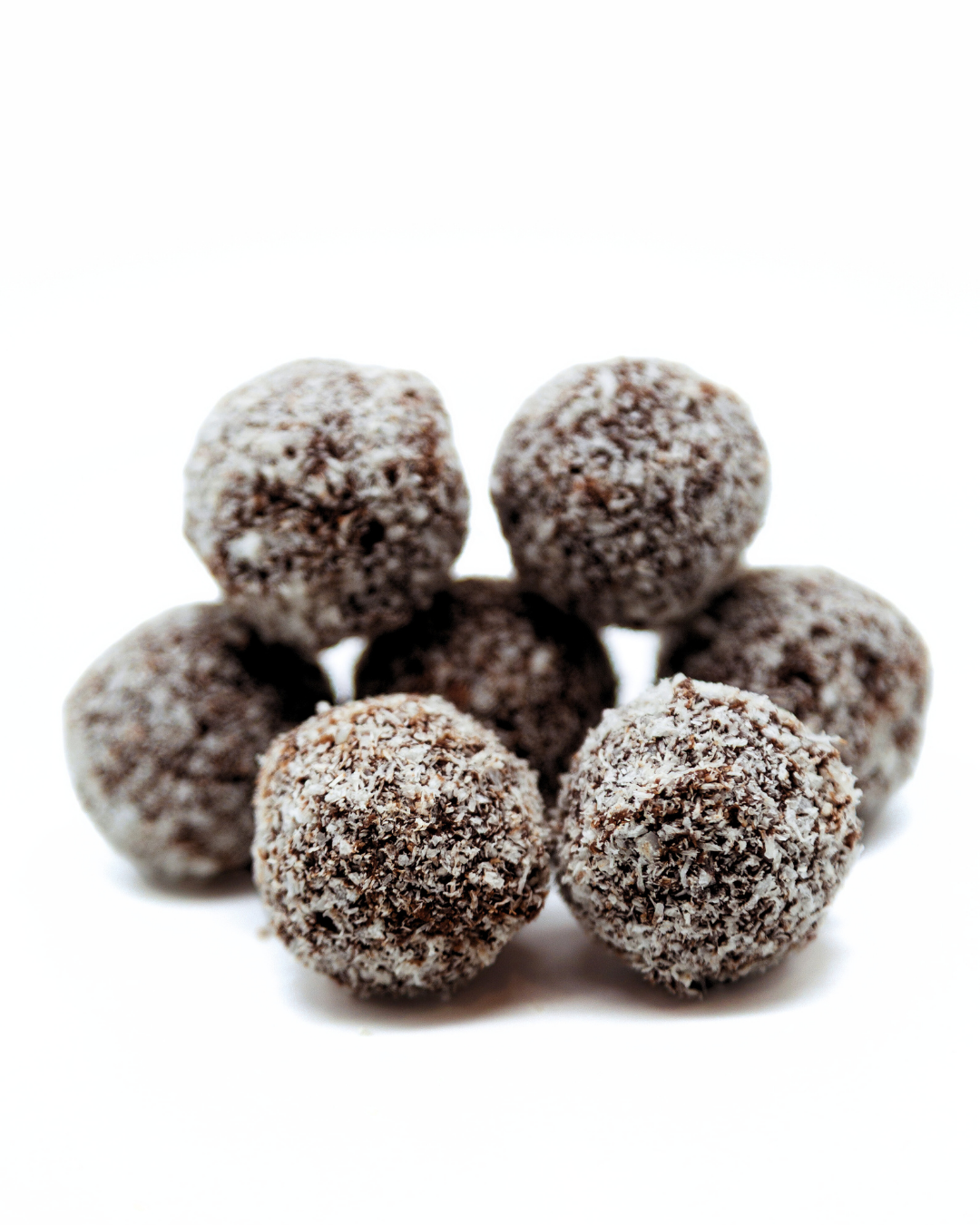 Lush coconut ganache in a dark chocolate truffle — a tropical escape in every bite. (All truffles are sold per kilogram, ±67 loose chocolates per kg, depending on size).